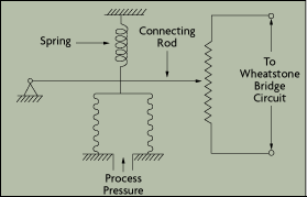 The potentiometric pressure sensor provides a simple method for obtaining an electronic output from a mechanical pressure gauge. The device consists of a precision potentiometer, whose wiper arm is mechanically linked to a Bourdon or bellows element. The movement of the wiper arm across the potentiometer converts the mechanically detected sensor deflection into a resistance measurement, using a Wheatstone bridge circuit (Figure 3-6).