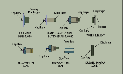 In some applications, it is desirable to prevent the process fluid from coming in contact with the sensing element. The process may be noxious, poisonous, corrosive, abrasive, have the tendency to gel, freeze or decompose at ambient temperatures, or be hotter or colder than the sensor can tolerate. Other reasons for inserting accessories between the process and the pressure instrument are to filter out potentially plugging solids or to remove potentially damaging pressure spikes or vibrations.
