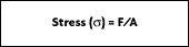 When external forces are applied to a stationary object, stress and strain are the result. Stress is defined as the object's internal resisting forces, and strain is defined as the displacement and deformation that occur. For a uniform distribution of internal resisting forces, stress can be calculated (Figure 2-1) by dividing the force (F) applied by the unit area (A):